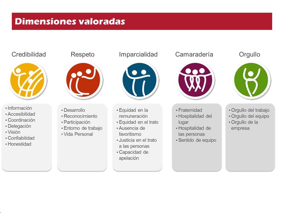 - Lideres comprometidos: Una gran empresa requiere de la colaboración de todos los miembros del equipo, pero particularmente de aquellos a nivel administrativo. Una directiva clara, comprometida e incluyente será un componente fundamental para mantener una gran cultura en la empresa. Nosotros nos aseguramos que sus líderes de su empresa comprendan la cultura y puedan comunicarla y respaldarla de manera eficaz.